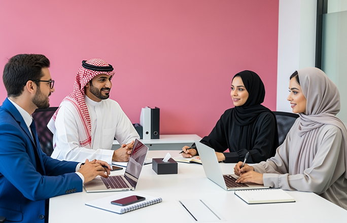 بيئة عمل داعمة: نؤمن بأهمية العمل الجماعي ونسعى لخلق بيئة تحفّز على الابتكار والتعاون